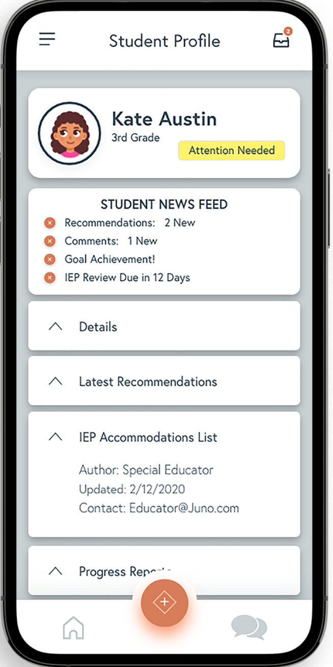 The student profile acts as the central location for teachers to quickly exchange and access real time information. New strategies, health alerts, IEP recommendations, reports, daily reminders... the student profile would incorporate them all.